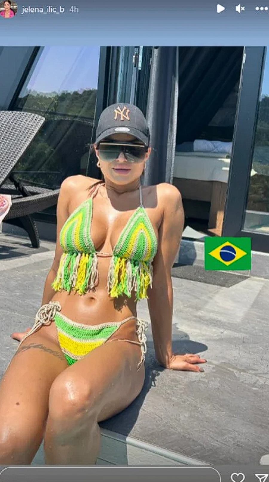 Ona je najpre pozirala u bikiniju u duhu brazilske zastave sa kačektom i naočarima za sunce, a zatim je u drugom bikiniju napravila selfi u ogledalu i ostavila sve bez teksta.