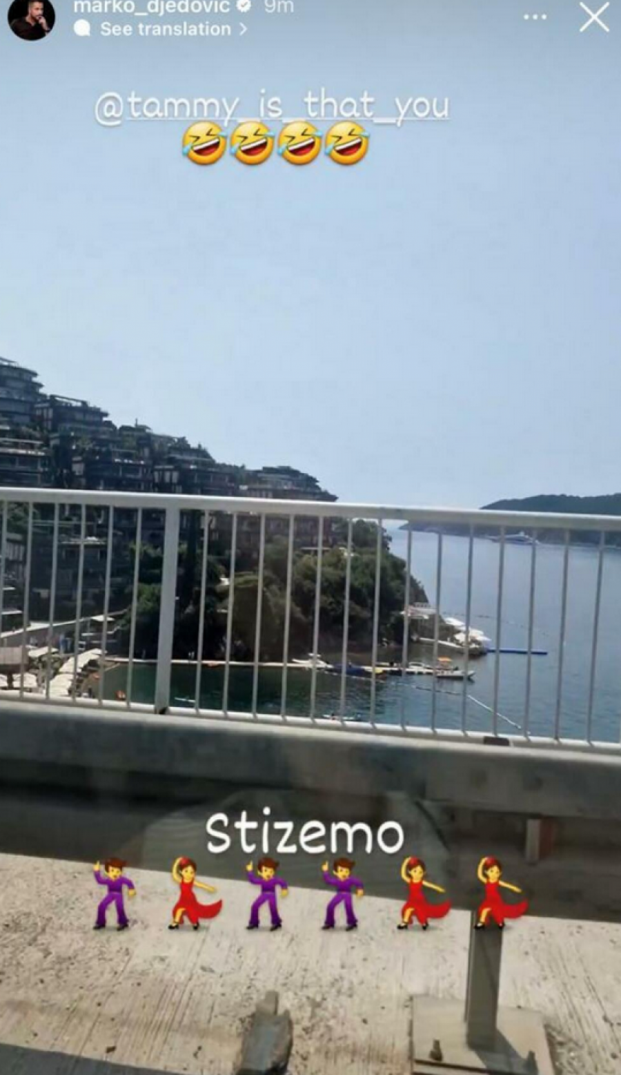 On je jutros stigao u Budvu, a video kako se približava obali je postavio na Instagram stori i tagovao Tamaru, koja će stajati uz njega tokom venčanja.