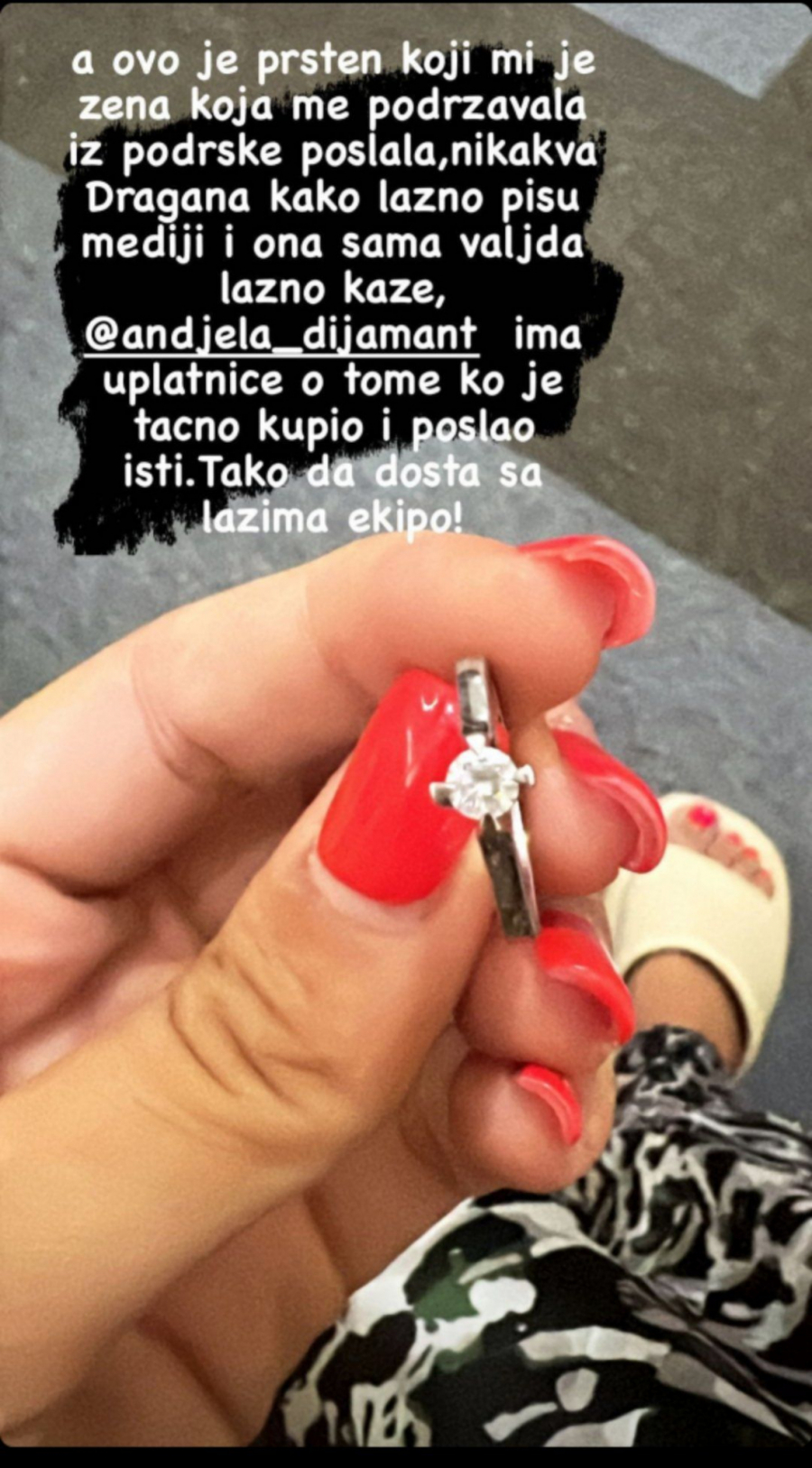 -Prsten o kojem se toliko polemiše sa moje poslednje objave je ovaj. Lično sam ga sama sebi kupila. Nikakav verenički prsten ne nosim, a kamoli što mi je neko kupio. Toliko.