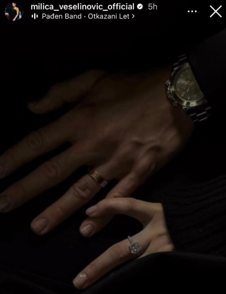 Milica Veselinović je na svom Instagram storiju objavila danas fotografiju na kojoj se vidi muška ruka sa burmom i ženska sa vereničkim prstenom, što je sve zaintrigiralo. Posle mnogih neuspelih veza, na taj način je bacila sumnju da se nešto novo dešava u njenom životu,