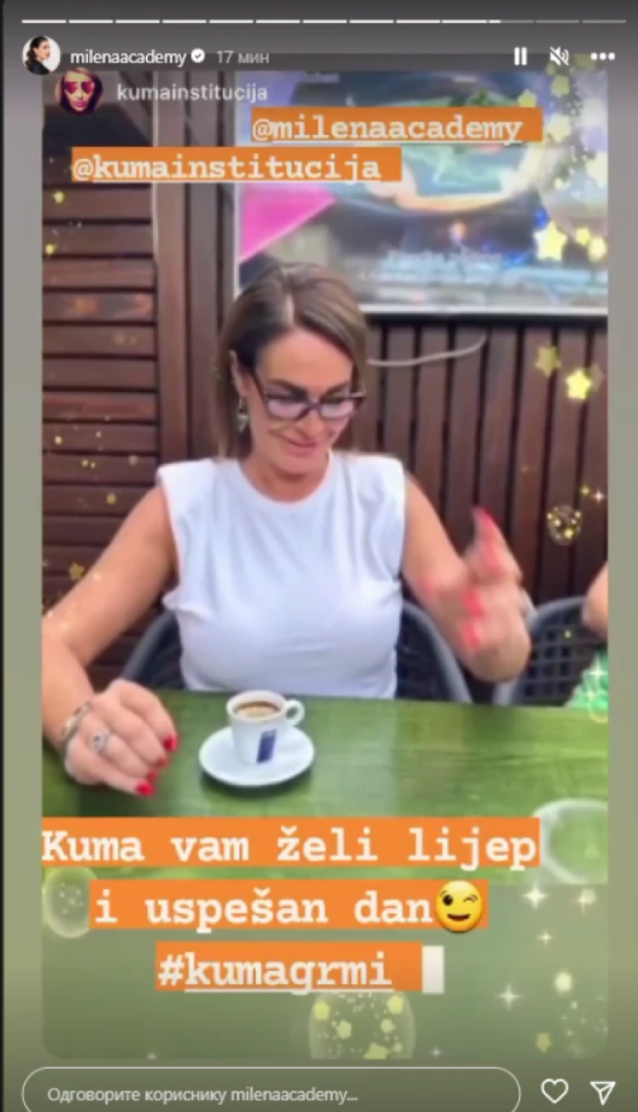 Milena je podelila i objavu druge fan grupe, koja nosi naslov "Kuma vam želi lep i uspešan dan, kuma grmi".