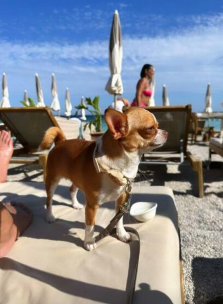 Kao što smo već pisali, u apartmanu se nalazi i poseban krevetić za njihovog ljubimca, čivavu Lusi, kao i činijice sa posebnom hranom i flaširana voda za psa.