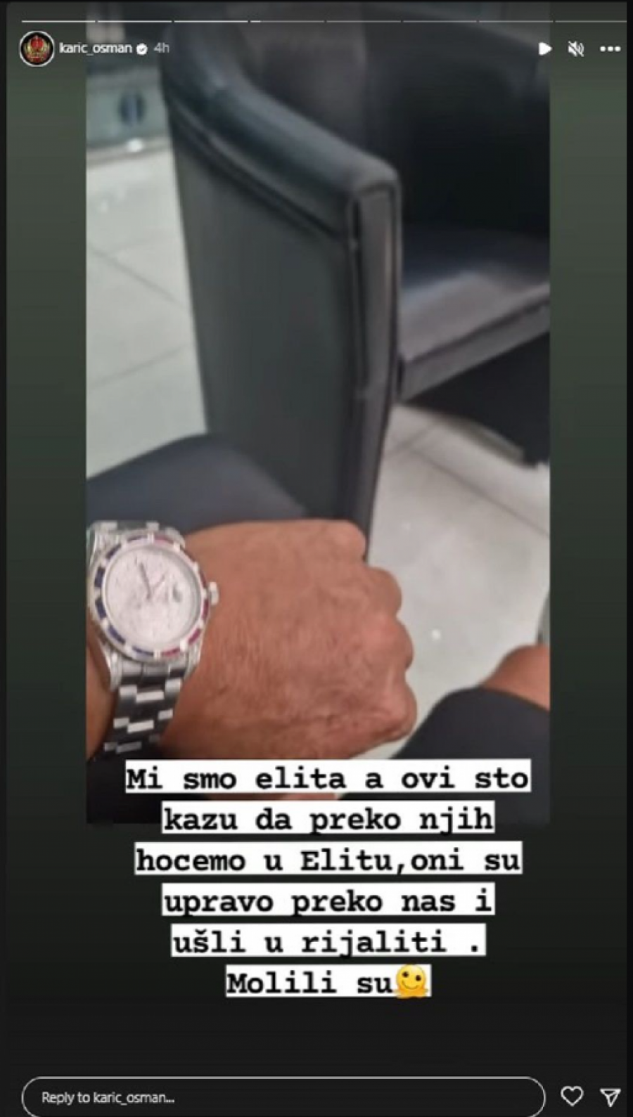 - Mi smo elita, a ovi što kažu da preko njih hoćemo u "Elitu", oni su upravo preko nas i ušli u rijaliti. Molili su - napisao je Osman.
