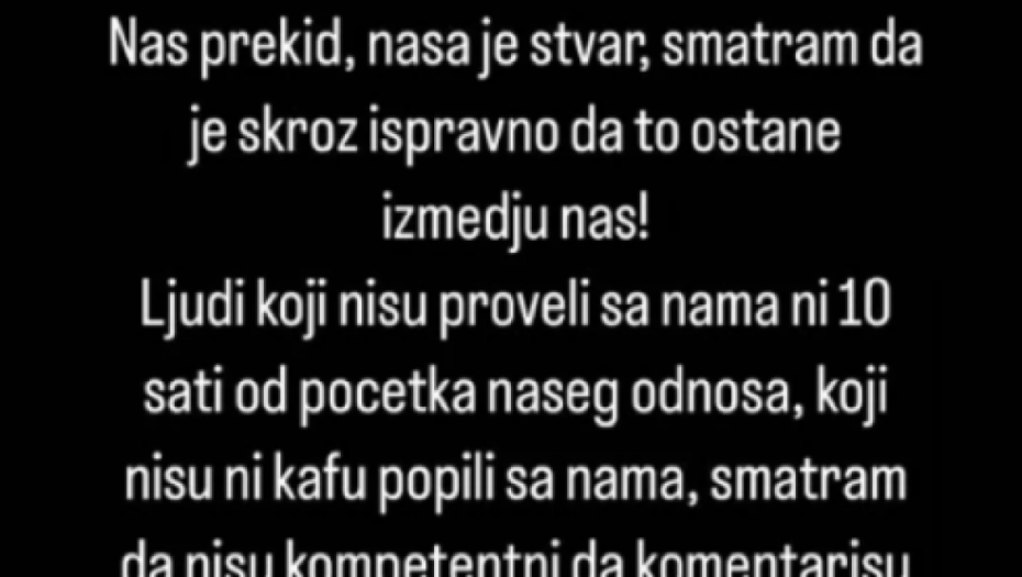 Vanja Aleksić, uskoro bivša supruga repera Nenada Aleksića Ša, oglasila se putem storija na društvenoj mreži Instagram. Ovo je njena prva objava nakon vesti da se razvodi od bivšeg zadrugara, a ostavila je zanimljivu poruku.