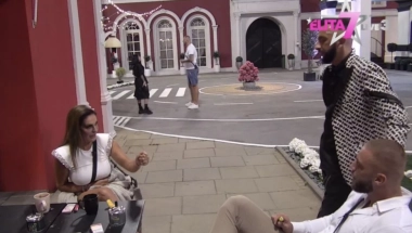 Voditelj Darko Tanasijević prišao je učesnicima "Elite" koji su sedeli ispred paba "Prijatelji" kako bi saznao detalje susreta Milene Kačavende i Mensura Ajdarpašića, koji se desio nekoliko dana pred početak rijalitija, u Crnoj Gori.