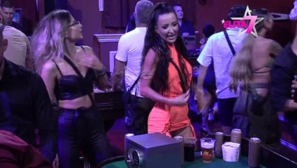 Pevačica Aleksandra Mladenović večeras uveseljava takimčare Elite svojim raskošnim glasom. Ona ih je pozdavila svojim hitom, a onda je nastavila u svom stilu da diže atmosferu.