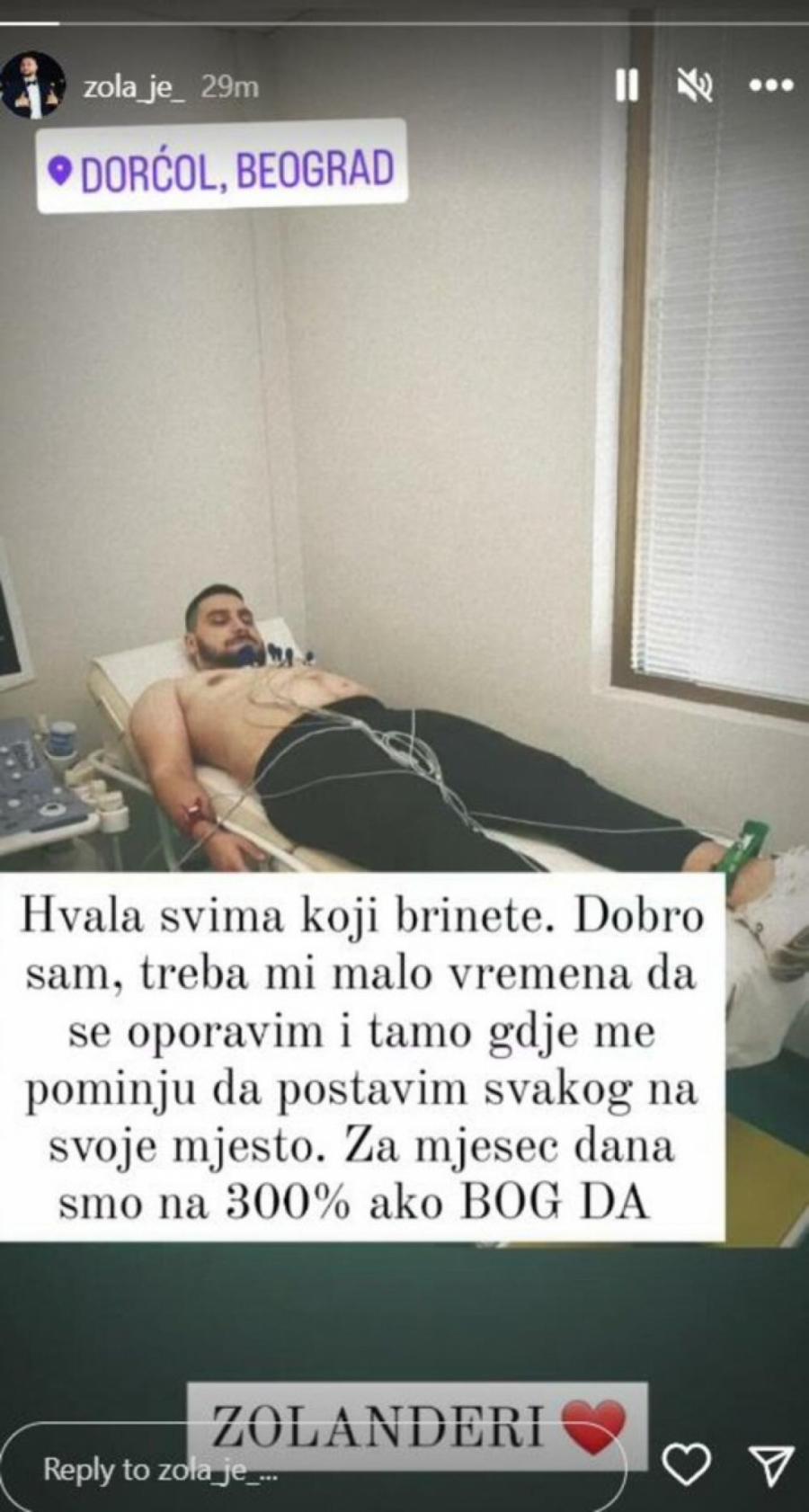 - Hvala svima koji brinete. Dobro sam, treba mi malo vremena da se oporavim i tamo gde me pominju da postavim svakog na svoje mesto. Za mesec dana smo na 300% ako Bog da, Zolanderi - poručio je Lazar.