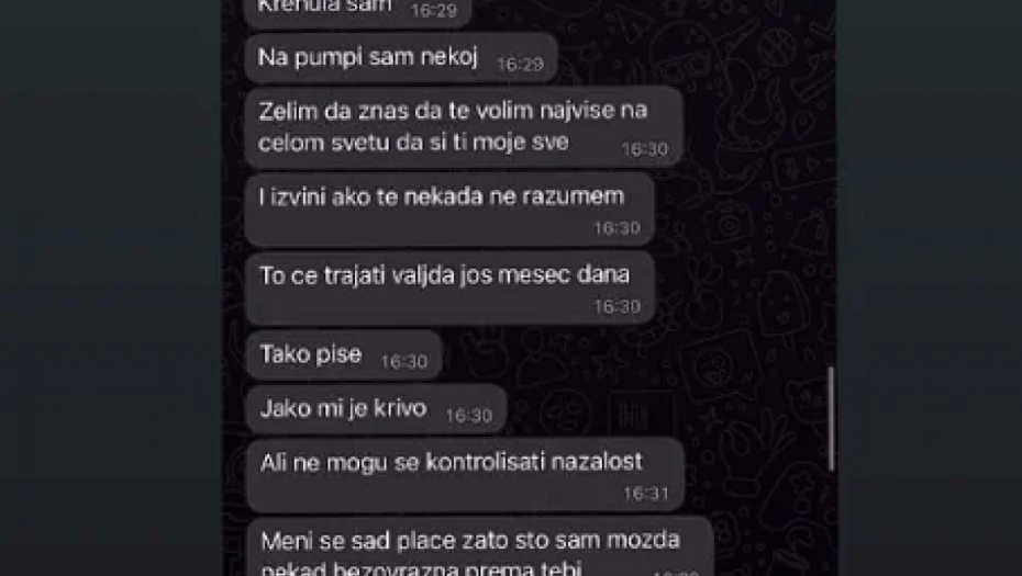 Kako se može videti, Aleks mu je napisala da joj je žao što se nekada, kako je navela, ponaša bezobrazno prema njemu.