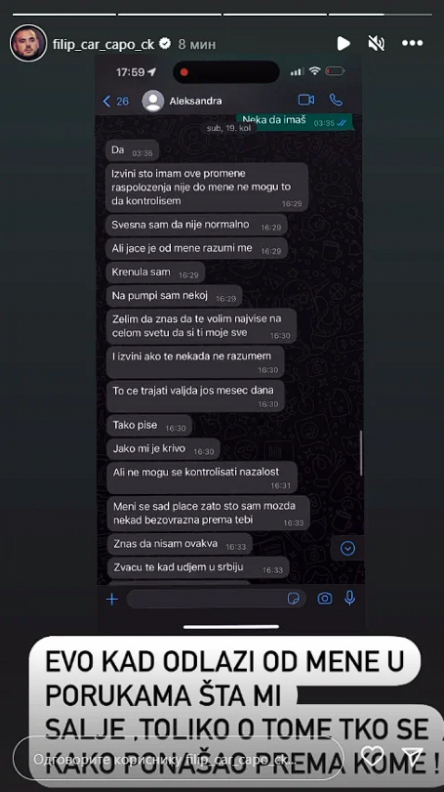 PODRŽAO JE U ODLUCI DA NE ABORTIRA! Filip Car obelodanio prepiske sa Aleks! (FOTO)