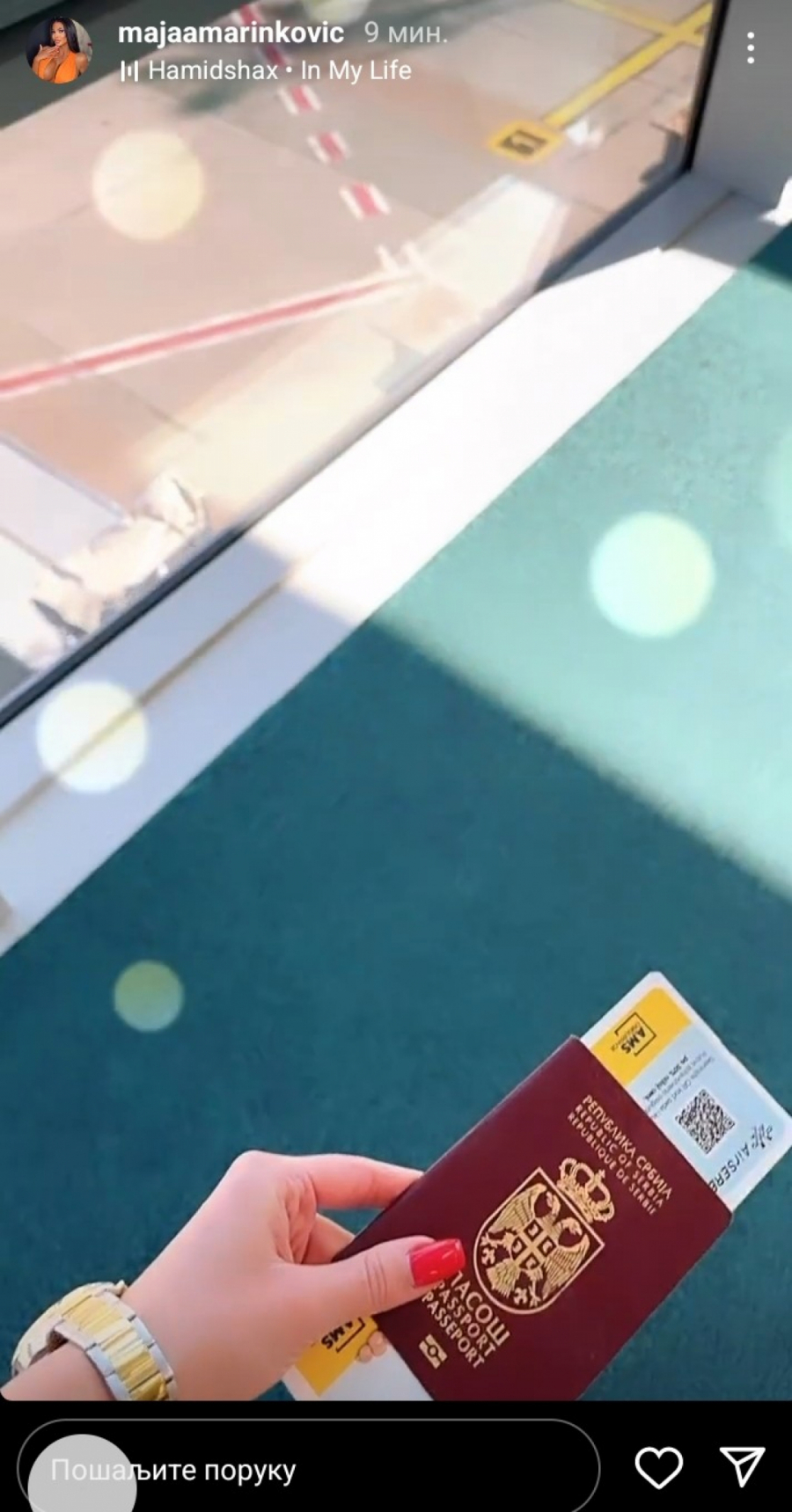 Naime, ona je kasno popodne objavila nekoliko fotki na svoj Instagram stori i time mnogima stavila do znanja da odlazi na put budući da se javila sa aerodroma u Beogradu.