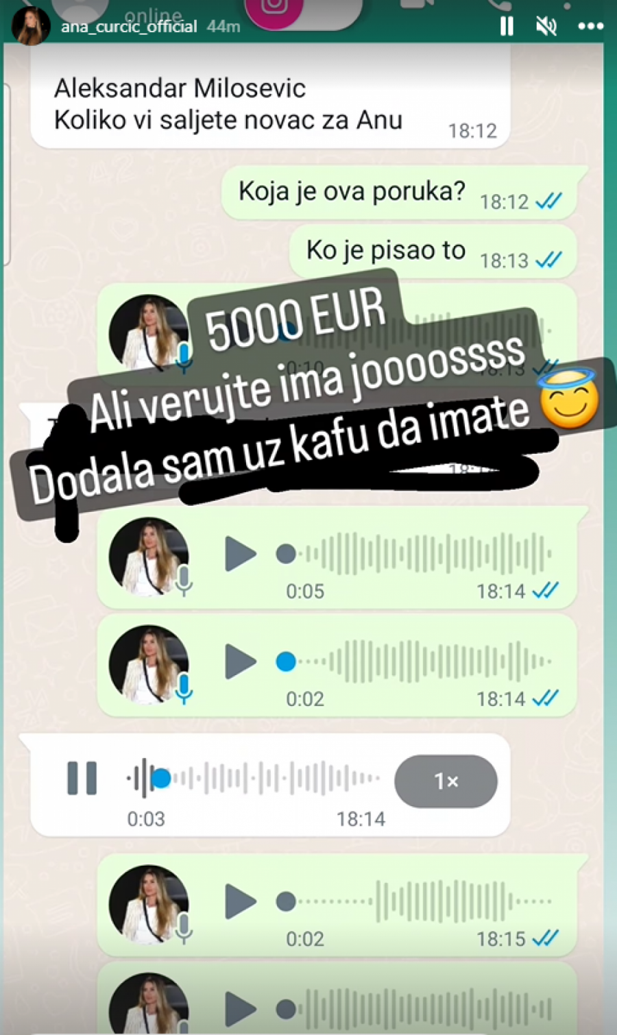 Nakon što su Milena Kačavenda i Marko Đedović u "Eliti" izneli optužbe na račun Ane Ćurčić, te otkrili da je ona uzimala novac od svojih fanova, drugoplasirana takmičarka "Zadruge 6" se hitno oglasila. Prvo je poručila da će demantovati njihove laži, a potom objavila privatnu prepisku sa izvesnom Gogom.