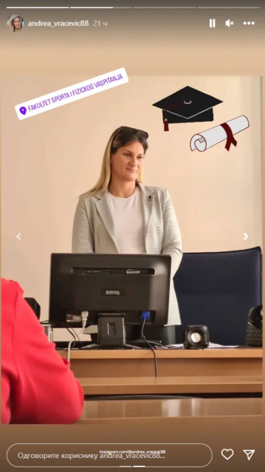 Naime, kako smo uspeli da ispratimo na njenom instagram profilu, Andrea je diplomirala na Fakultetu sporta i fizičkog vaspitanja Univerziteta u Novom Sadu, te je dobila zvanje diplomiranog profesora fizičkog vaspitanja i sporta. Ona se pohvalila fotografijom svog indeksa, ali i svojom fotografijom sa fakulteta.