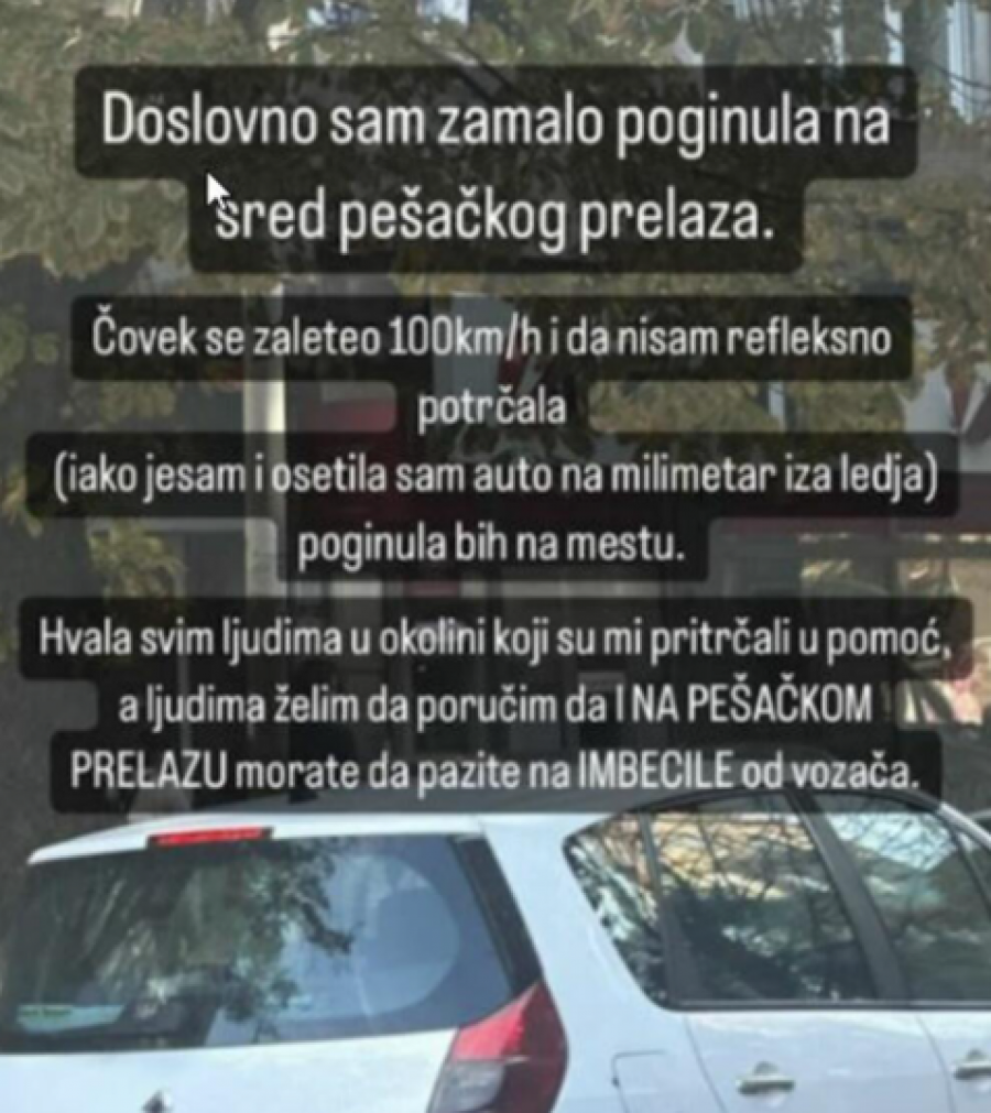 Inače, Simova je juče zabrinula sve svoje pratioce kad je otkrila da ju je umalo udario auto dok je prelazila ulicu. Prema njenim rečima, vozač se zaleteo brzinom od 100 kilometra na čas, a da ona refleksno nije potrčala, situacija bi se završila tragično, kao i da su joj prisutni ljudi odmah pritrčali u pomoć.