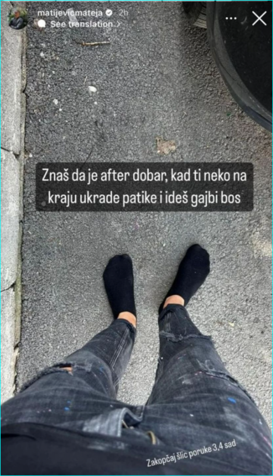 Mateja je objavio fotografiju na kojoj u čarapama šeta beogradskim ulicama i još sa otkopčanim šlicem, a potom napisao: