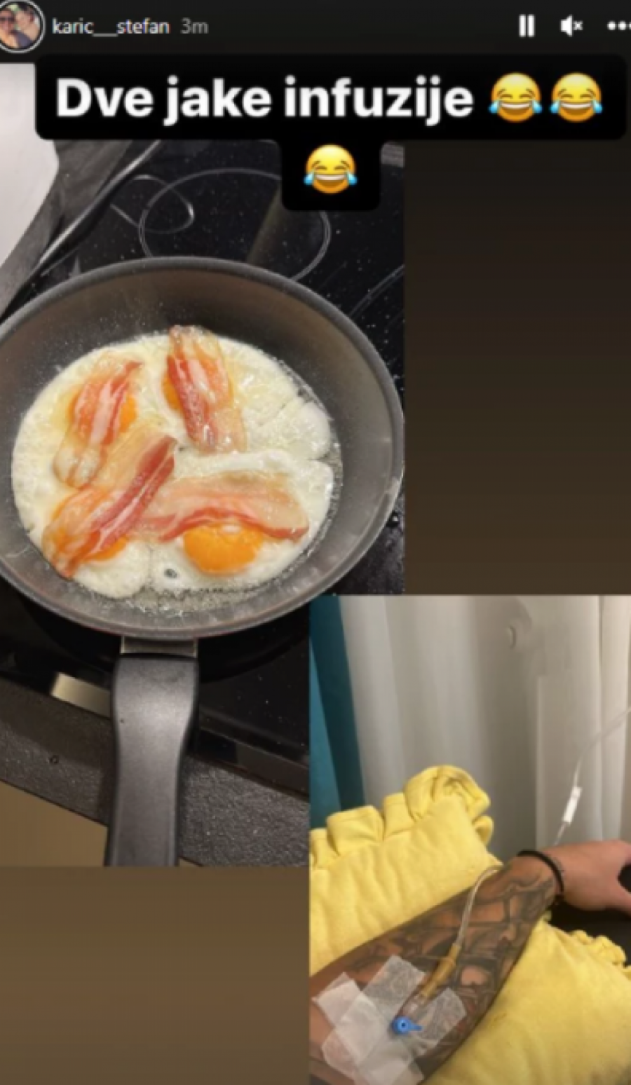 Stefan Karić je veoma aktivan na društvenim mrežama, a sada je podelio fotografiju na kojoj se vidi kako bivši zadrugar prima infuziju, ali i fotografiju obroka koji sprema sebi