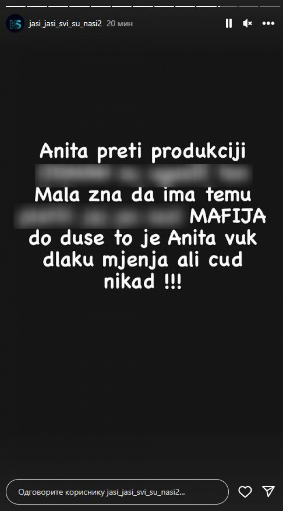 Anita se nije ustručavala, već je javno uputila, za sada još uvek nepoznate, pretnje ljudima iz produkcije i time prekršila strogo pravilo.