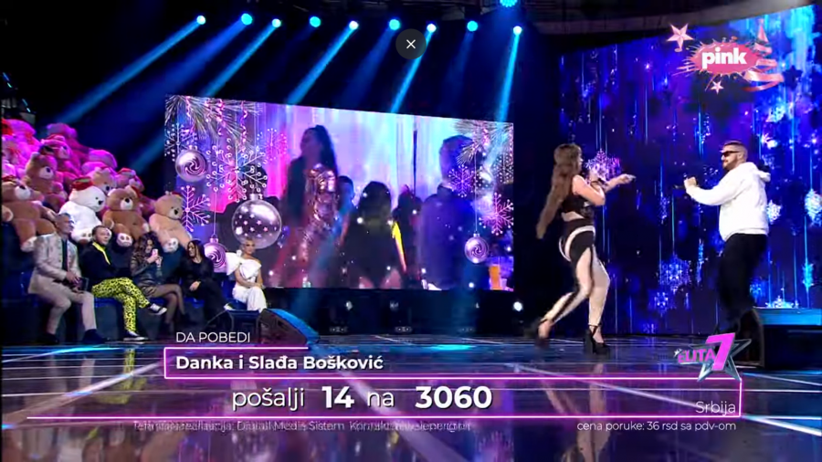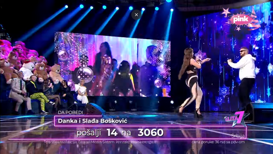 Zola je prvi iskoračio na binu, dok je Miljana u pozadini mešala kukovima. Zola je sve vreme podizao publiku i stručni žiri na noge. Nakon prvog refrena, Miljana je totalno zasijala pred milionskim auditorijumom, a onda je i zatverkovala.
