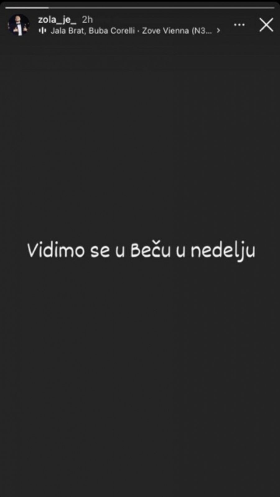 - Vidimo se u Beču u nedelju - najavio je Zola uz pesmu Jala Brata, Bube Korelija i Raf Kamore "Zove Vienna".