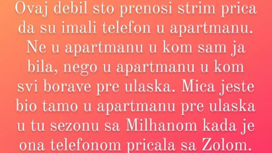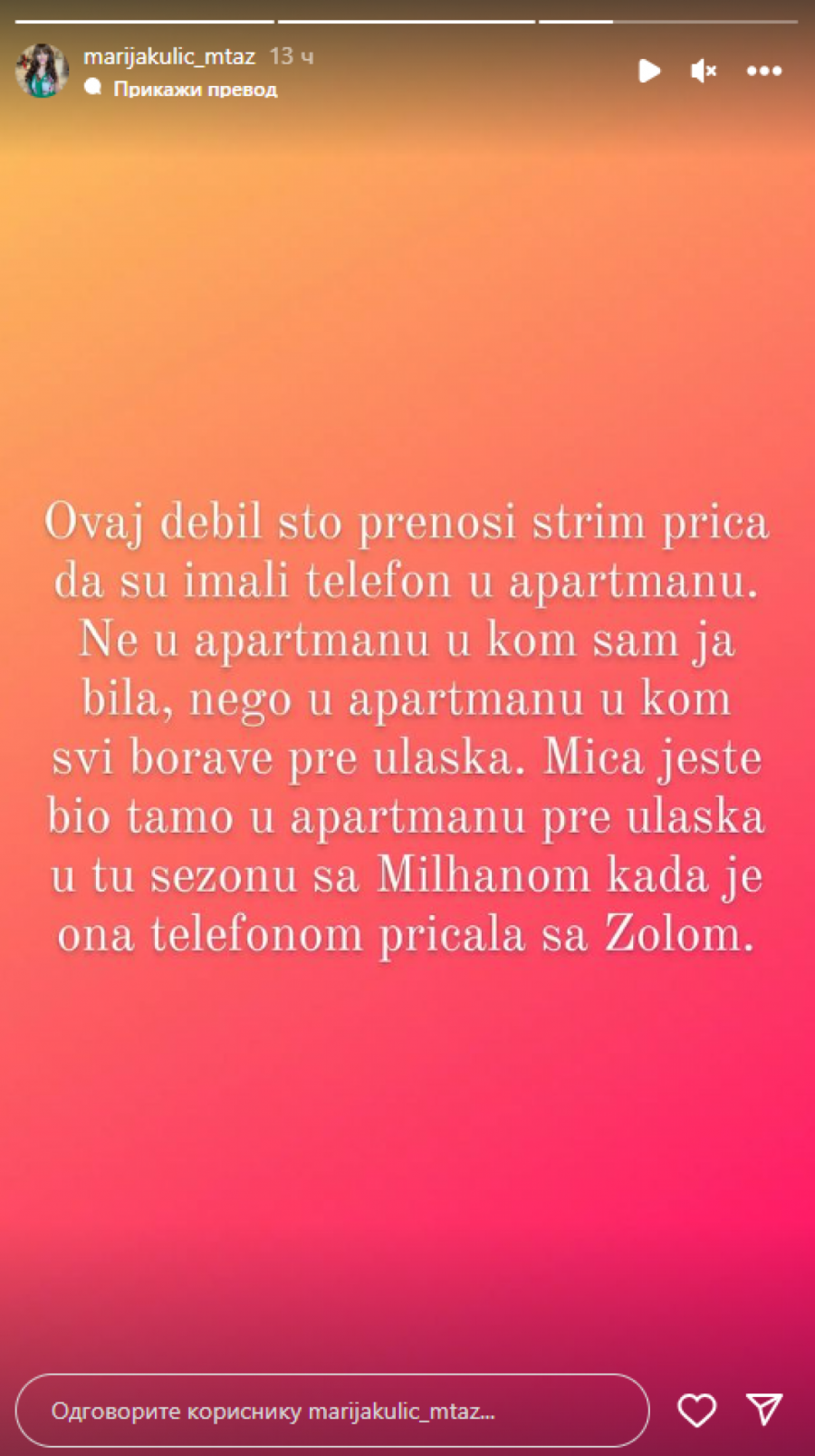 Majka učesnice Elite Miljane Kulić, Marija, koja je trenutno van rijaltija, ali pomno prati šta se dešava, ponovo se oglasila nakon što je otkriveno da njena ćerka ipak nije u drugom stanju.