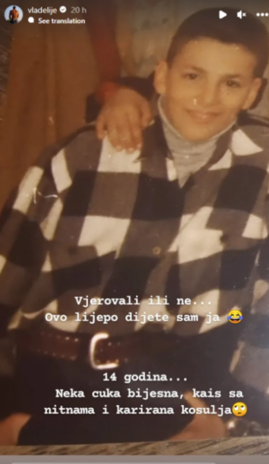- Verovali ili ne, ovo lepo dete sam ja. 14 godina, neka čuka besna, kaiš sa nitnama i karirana košulja - napisao je Vladimir Tomović na Instagramu.