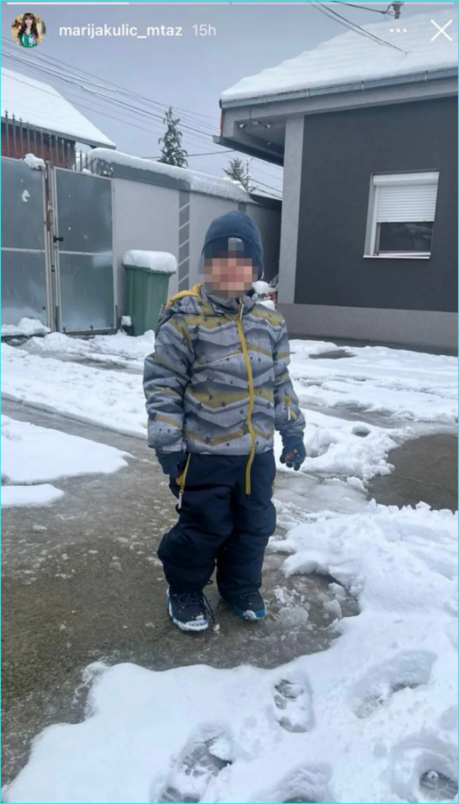 Ona često na mrežama deli fotografije malog Željka, a sada je objavila divnu fotografiju iz dvorišta kuće i pokazala kako mali Željko uživa na snegu.