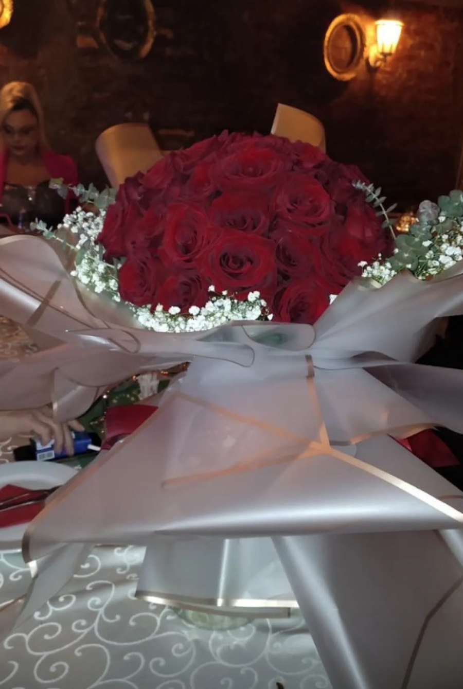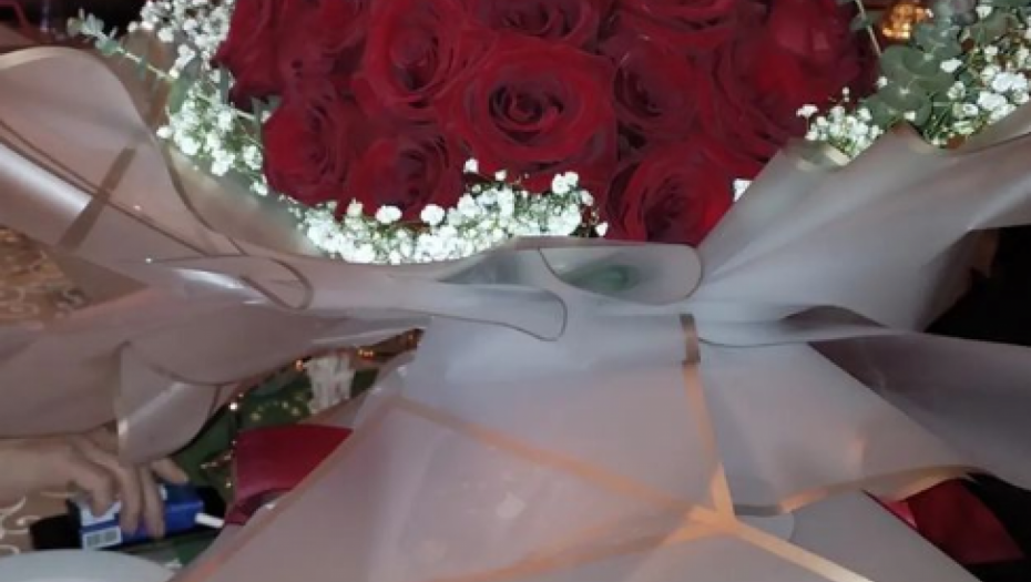 Marija je podelila delove atmosfere sa žurke, pa smo najpre videli ogroman buket prelepih crvenih ruža koji je dobila od najmilijih. Potom je pokazala kako je njen suprug Siniša pažljiv, pa ga je usnimila dok joj je sipao vino.