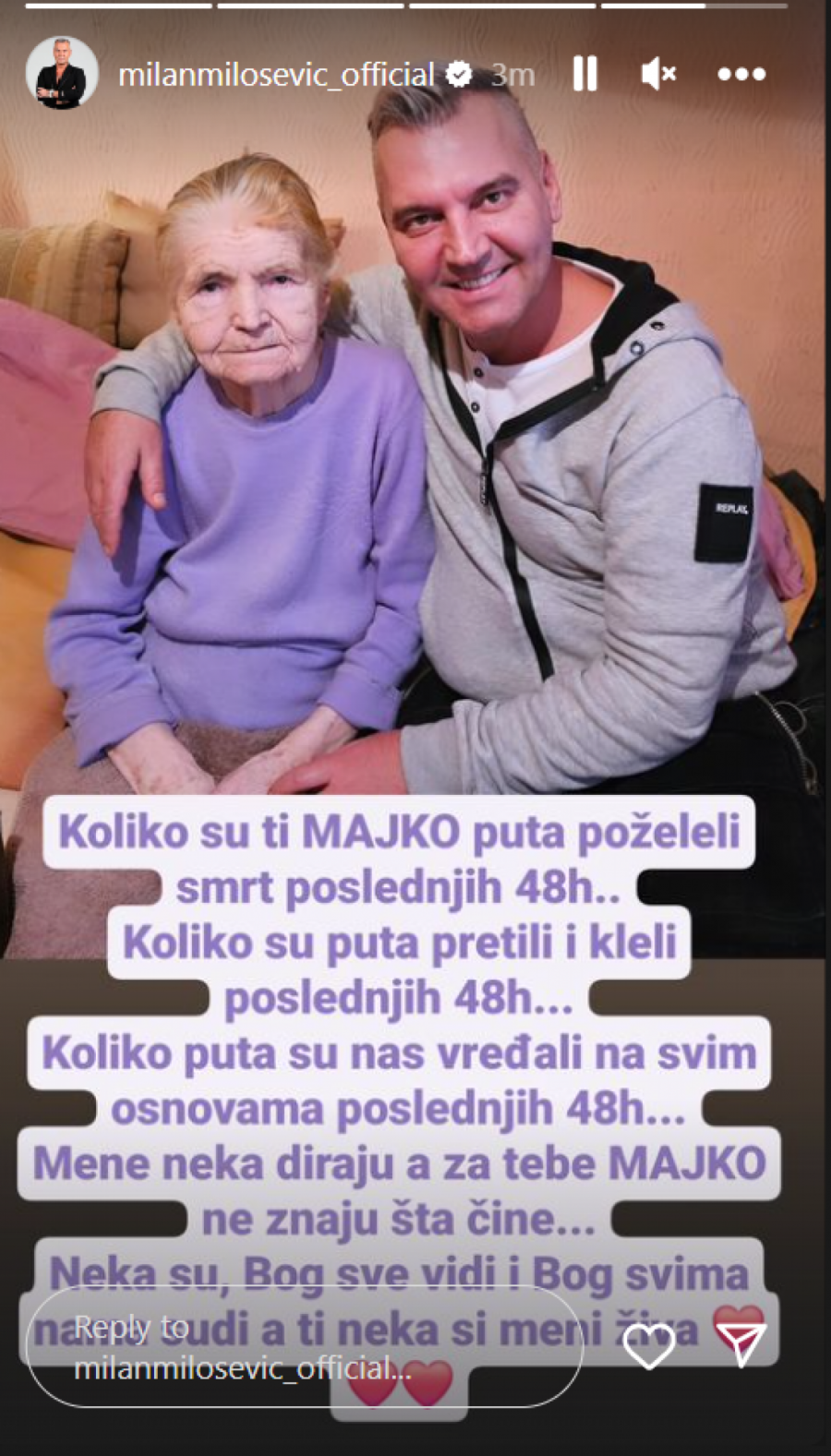 Voditelj TV Pink Milan Milošević pokazao je na svom Instgramu kakve pretnje dobija, a najviše se potresao što su mu udarili i na majku.