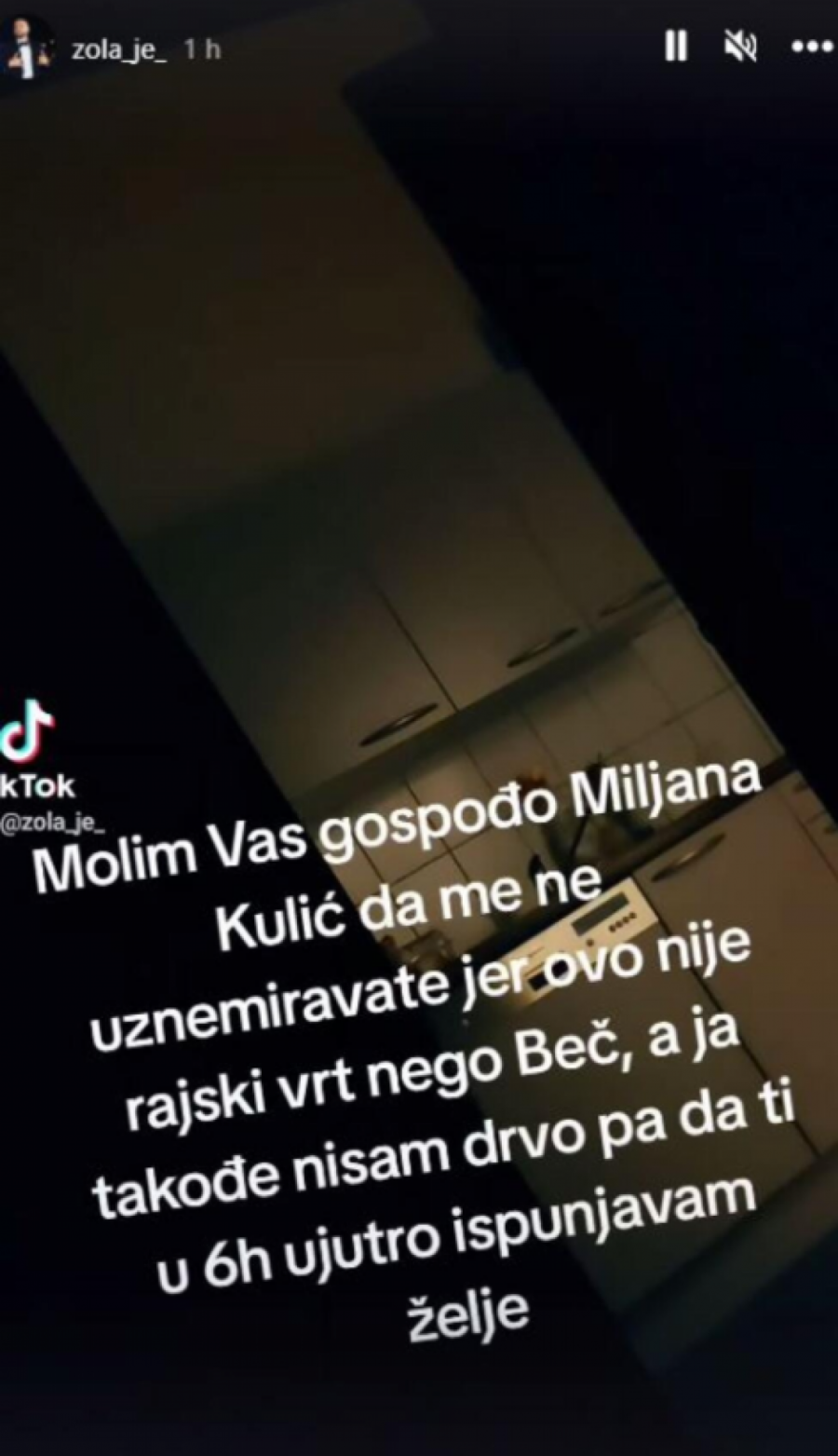 Nakon što je objavio snimak, na kom se čuje da neko lupa na vratima, a kako sam Čolić navodi da je upitanju Miljana Kulić, on se sada oglasio i poručio sledeće: