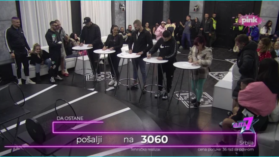 Darko Tanasijević je saopštio nominovanima ko večeras napušta Elitu. Najviše 35%, jedna 29%, jedna12%, jedna 4%.