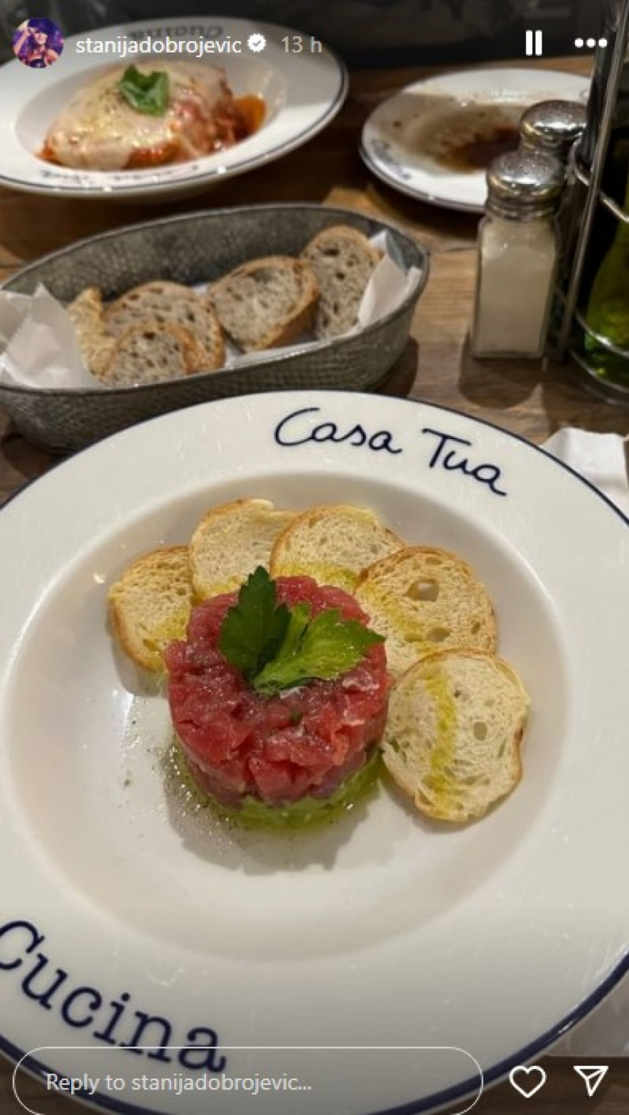 Stanija je objavila na pomenutoj mreži fotografije iz šopinga, gde se vidi da nije izašla praznih ruku, već je sa sobom imala pune kese iz modne kuće "Balensijaga", a nakon toga osvanula je i slika sa ručka u jednom restoranu, na kome se vide dva tanjira, a mnogi su se odmah zapitali ko joj to pravi društvo.