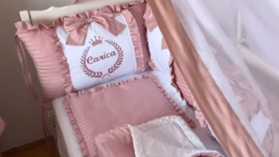 Takođe, izrazila je želju da ima potpuno istu posteljinu kao i beba, tako da je sada cela soba u roze tonu, a jastuci i prekrivači istog dezena.