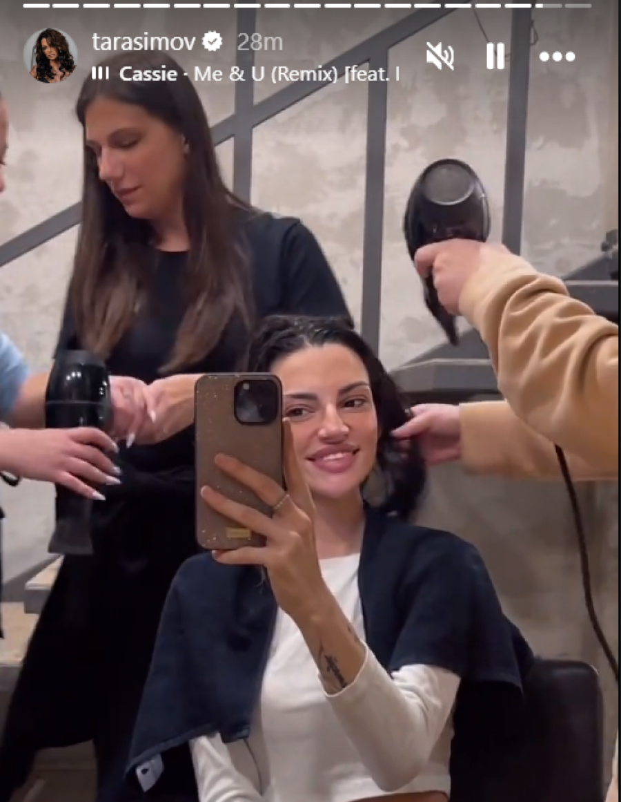 Naime, Tara je objavila dve fotografije iz frizerskog salona. Na jednoj je ona sa frizerkama koje je ulepšavaju, a na drugoj je nepoznata muška osoba koja se igra sa psom.