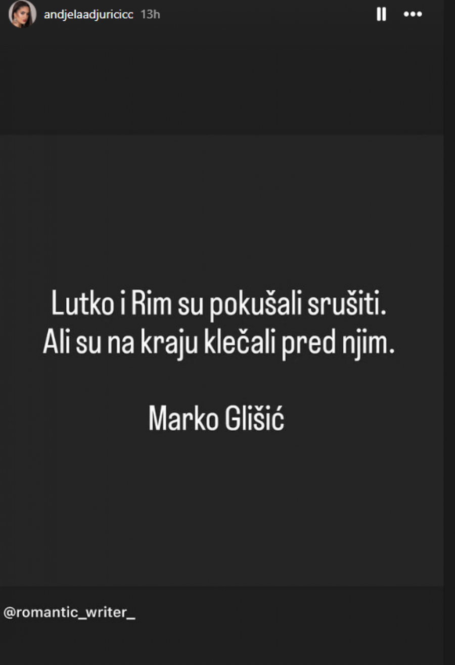 - Lutko i Rim su pokušali srušiti. Ali su na kraju klečali pred njim - postavila je Anđela fotografiju sa navadenim opisom, a nakon toga je otkrila svoju lokaciju.