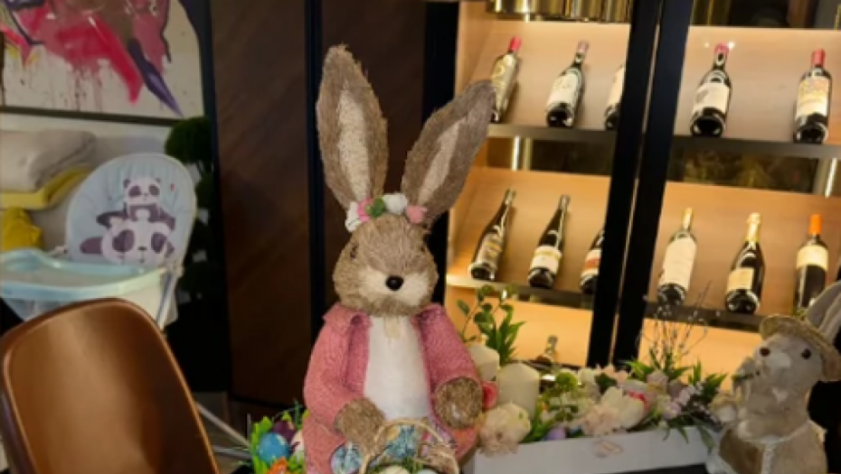 Na stolu su se našli Uskršnji zeka,pilići, ali i umetnički ofarbana jaja.
