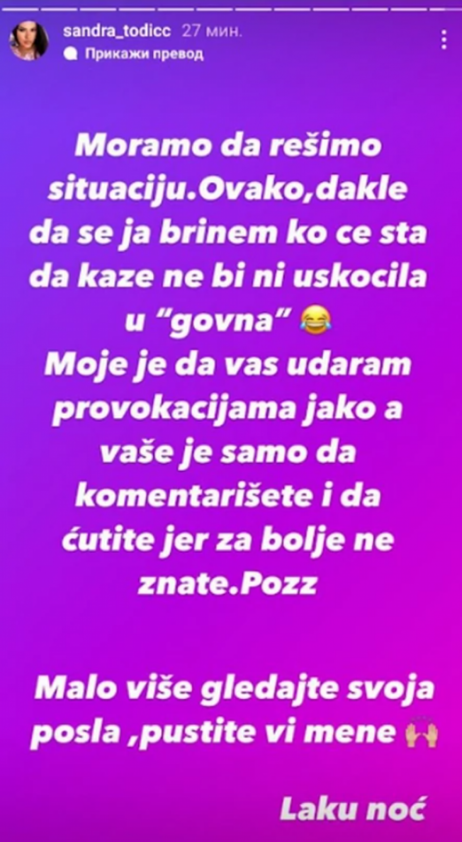 Sandra je dobila gomilu kritika na svoj račun nakon ovog poteza, pa je rešila da se obrati pratiocima na pomenutoj društvenoj mreži.