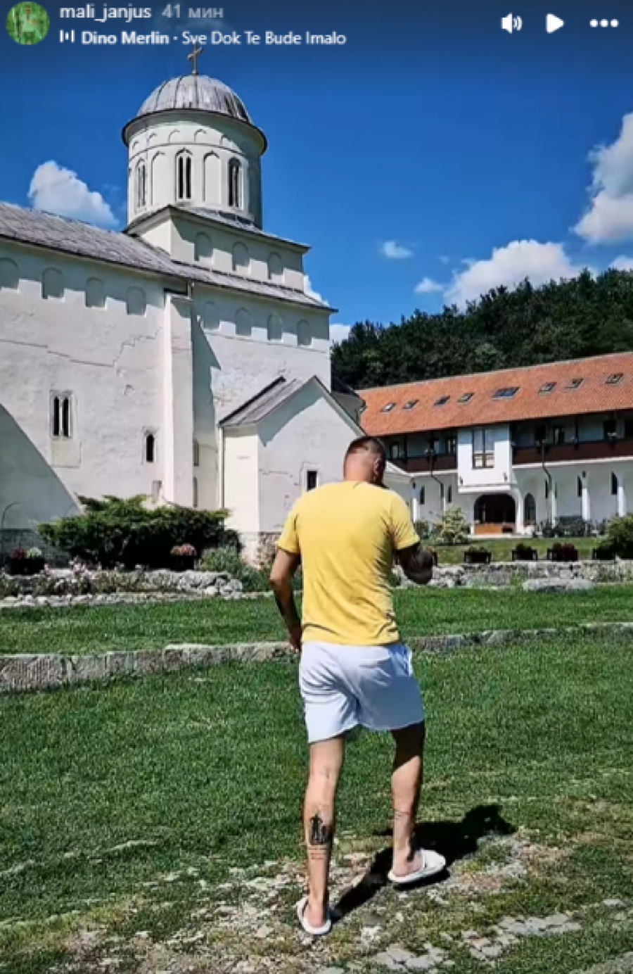 Objavio je snimak na kojem šeta po dvorištu manastira i uživa u lepom danu.