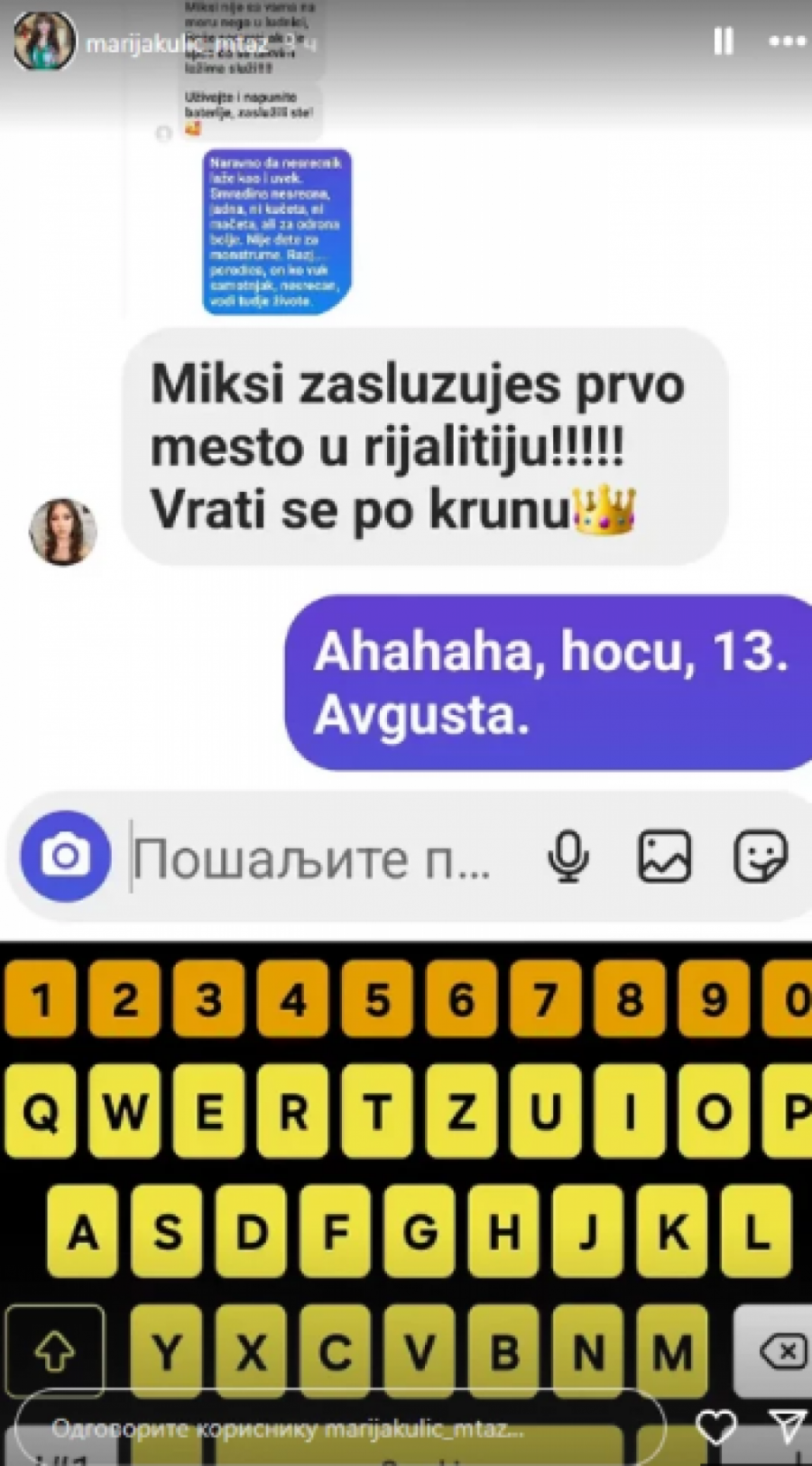 - Miksi, zaslužuješ prvo mesto u rijalitiju! Vrati se po krunu - napisali su joj, a ona je odgovorila sledeće: