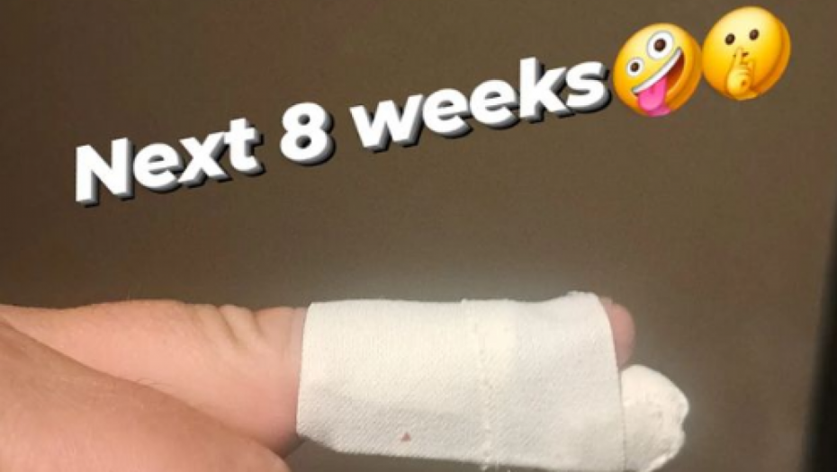 Po izlasku iz bolnice on je otkrio da će narednih 8 nedelja nositi fiksaciju na povređenom prstu.