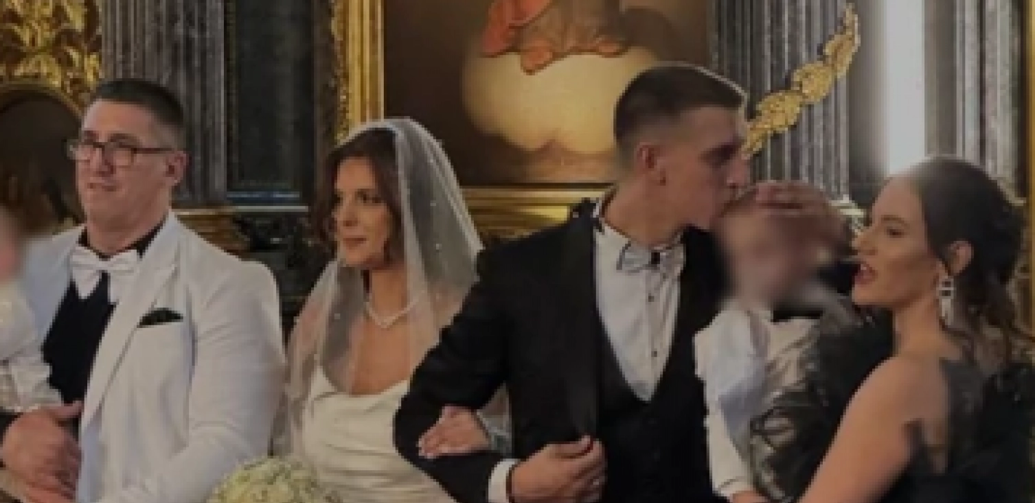 PRVE FOTKE SA VENČANJA SINA KRISTIJANA GOLUBOVIĆA! Mlada sa dubokim šlicom, a tek da vidite mladoženju, svi gledaju u jedan detalj