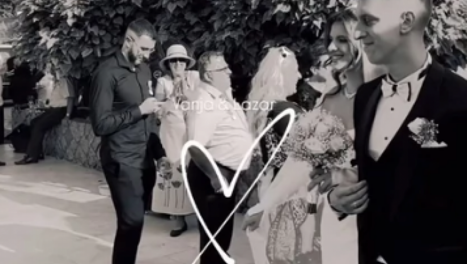 Lazar je bio elegantan u crnom odelu sa belom leptir mašnom, dok je njegova izabranica oduševila u predivnoj venčanici sa dubokim šlicem i skupocenim nakitom.