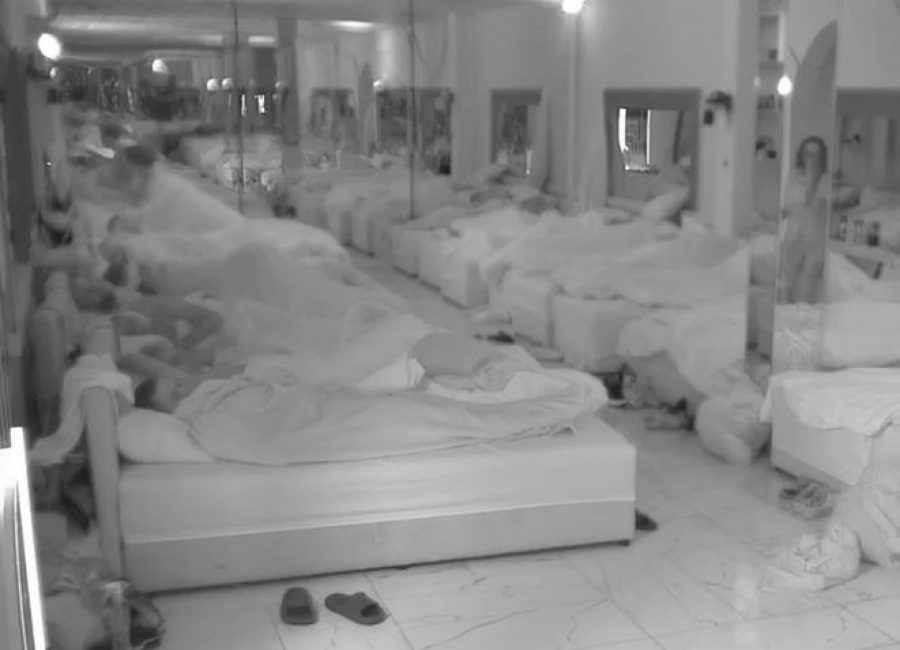 Njih dvoje su se pomerali u krevetu i krili ispod jorgana, a iako nije sigurno šta se tačno dogodilo, pretpostavlja se da su bili intimni.
