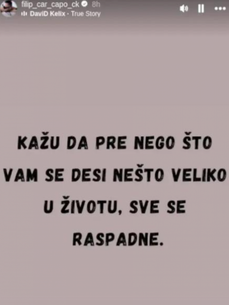 - Kažu da pre nego što vam se desi nešto veliko u životu, sve se raspadne - poručio je Car, a mnogi su ove reči shvatili kao da je njegov život trenutno u rasulu, te da i sam očekuje velike i lepe stvari.