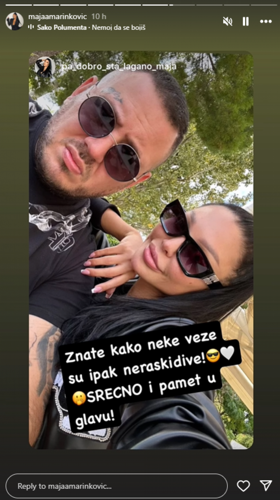 Maja Marinković i Filip Car su obnovili kontakt po završetku njenog učešća u Eliti 7, taman u vreme kada je on raščistio odnos sa Aleksandrom Nikolić, sa kojom je dobio ćerku Leonu.