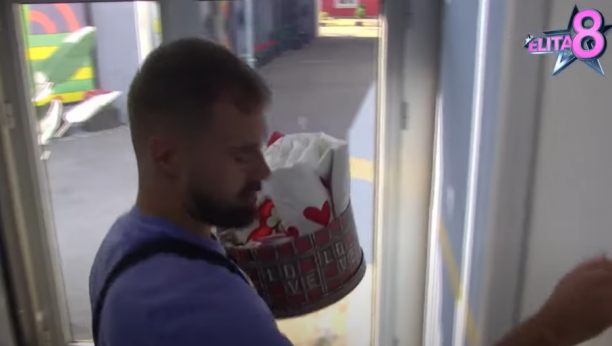 U Belu kuću obezbeđenje je unelo poklon iznenađenja za Uroša Rajačića i Jelenu Ilić Marinković.
