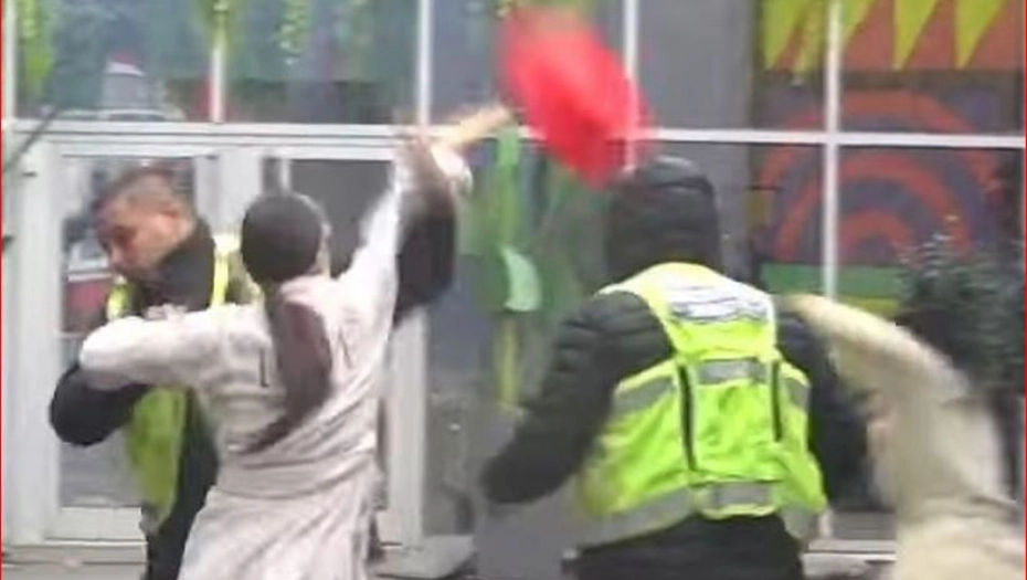 Nakon što je pobacala jastuke i posteljinu po podu, Jelena je počela da izbacuje stvari napolje, a zatim je reagovalo i obezbeđenje.