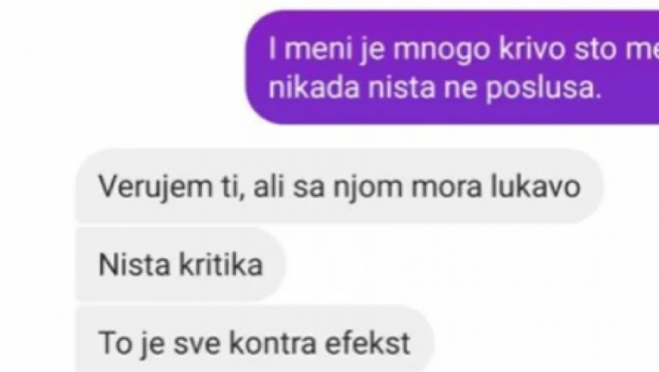 - Verujem ti, ali sa njom mora lukavo, ništa kritika. To je sve kontra efekat. Mora sve na fino, tako ja mislim, jer si sve probala i vidiš da je ovo viša sila.