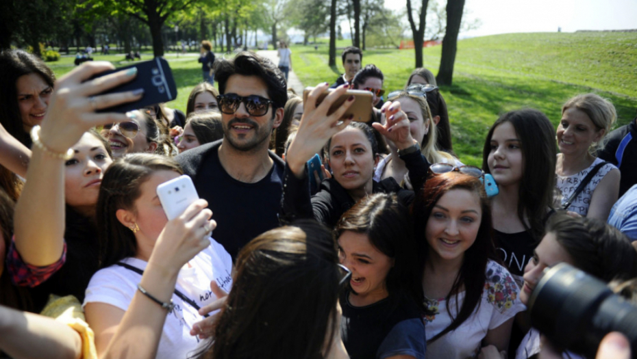 Popularni Bali-beg bio je raspoložen i slikao se sa velikim brojem obožavateljki.Posle šetnje Kalemegdanom uputio se na krstarenje Dunavom, a obožavateljke su ga pratile u stopu.