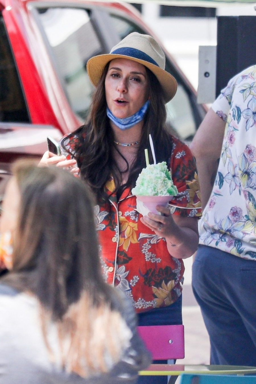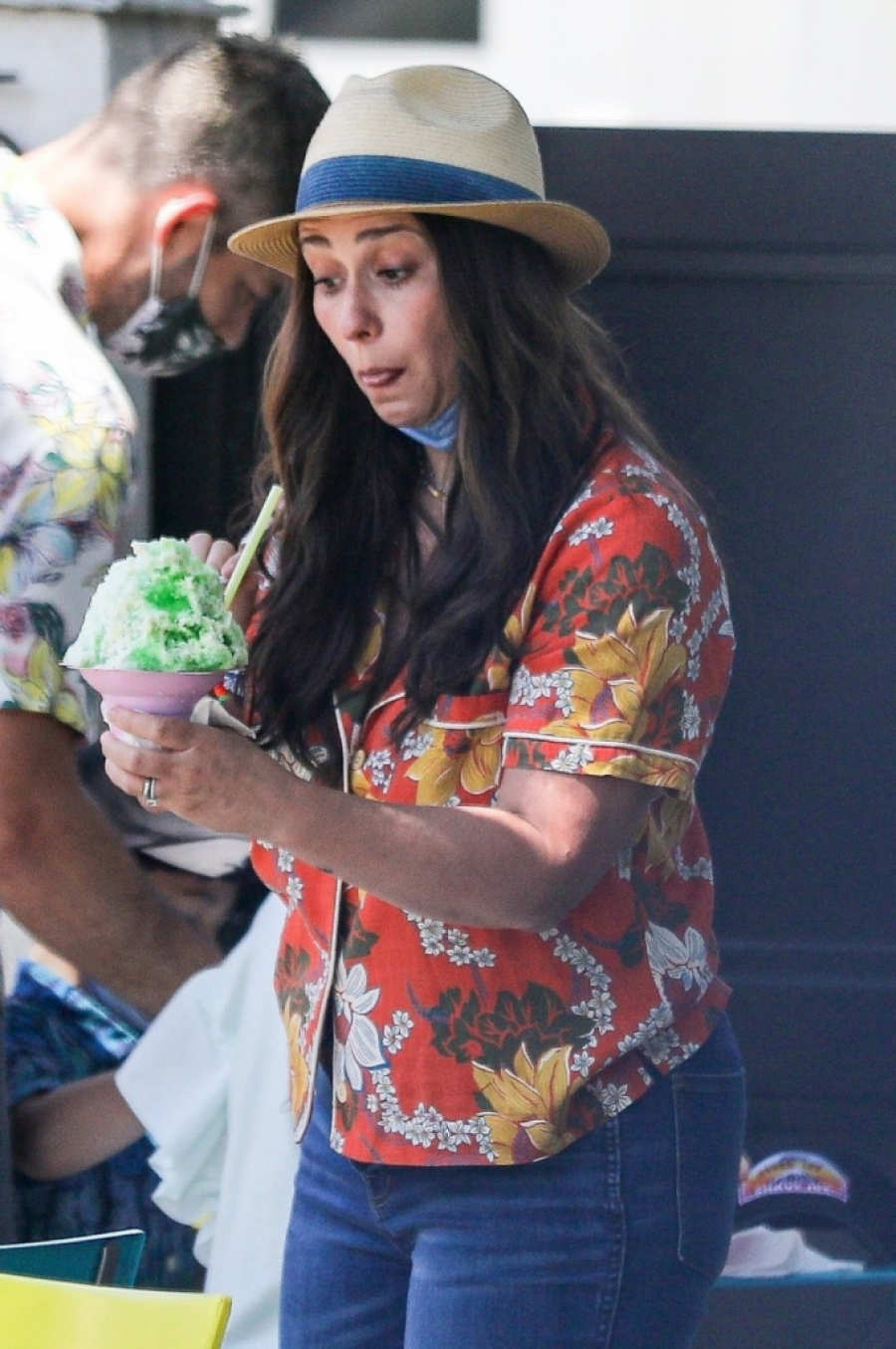 Zapravo, pravo je čudo da ju je fotoreporter i prepoznao, budući da se u međuvremenu poprilično promenila. Uhvaćena je na ulici sa suprugom i decom kako vrućinu ublažava sladoledima, a bila je odevena u havajsku košulju i farmerke.