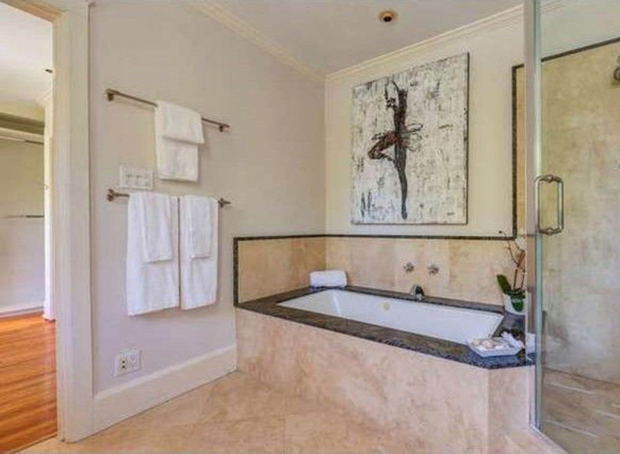 Novi glumičin dom okružen je raznim drvećem, te podseća na mini džunglu. Dvorište nudi bazen sa uređenim spa centrom, kaminom i sadrži dosta prostora za odmaranje i sunčanje, a sve je ušuškano u bujno zeleno lišće. Visoka živa ograda potpuno drži imanje odvojenim i privatnim od spoljneg sveta. Ono čime se ovo imanje odvaja od drugih jeste što ima i lični povrtnjak, te će glumica sama moći da sadi i ubira plodove iz svoje bašte.