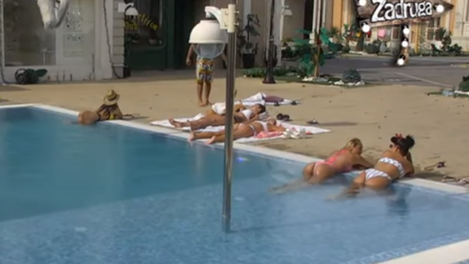 Naime, zadrugari koji su se sunčali danas pored bazena su izneli jorgane kojima se pokrivaju noću i sunčali se na njima! To i ne zvuči tako strašno, da ih oni nisu stavili na pod, kako na doku pored jezera, tako i pored bazena i travi koju ni sami ne čiste.